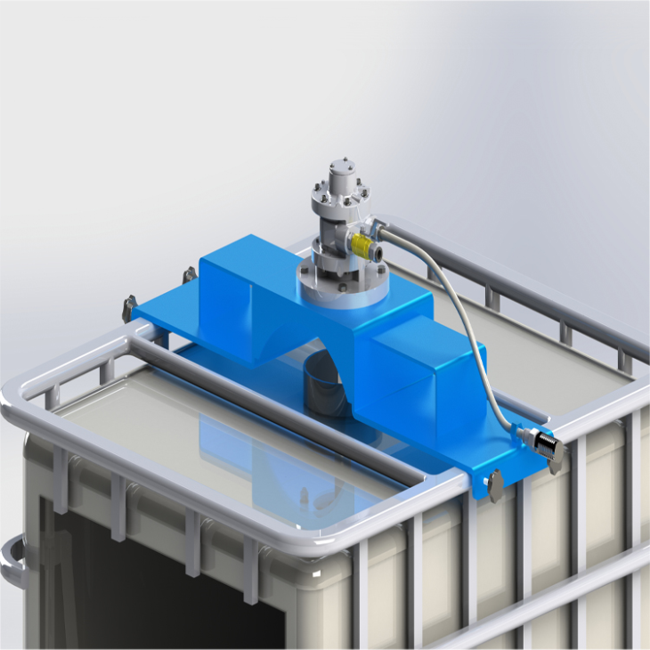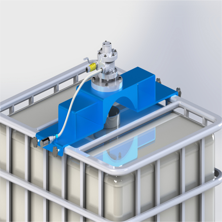 横架于IBC桶框上,锁紧两边螺丝,接通气源就可搅拌。经济实惠,安全方便。