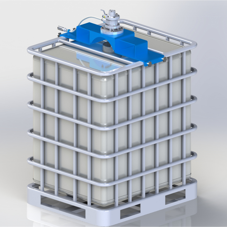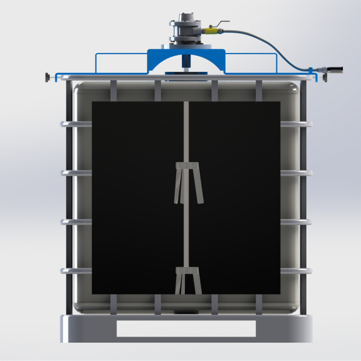 用于IBC桶用(IBC桶外形尺寸: L1210*D1010*H1150mm), 溶解、混合、反应。防沉淀等多变的搅拌场合。